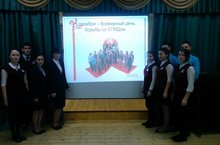 Целью Всемирного дня борьбы со СПИДом является повышение осведомлённости о ВИЧ/СПИДе и демонстрация международной солидарности перед лицом эпидемии. В 10 классе Медведева Н.Н. провела классный час «Всемирный день борьбы со СПИДом». Главными целями занятия были: повысить уровень информированности учащихся о распространении эпидемии ВИЧ/СПИДа в стране, способствовать выработке у учащихся мотивации овладения профилактическими знаниями и навыками по вопросам ВИЧ/СПИДа.