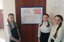 Учитель истории Медведева Надежда Николаевна объявила в школе «Великую викторину», посвященную 70-летию Победы в Великой Отечественной войне. Каждый день классы получает задания на определенную тематику (Великие сражения. Полководцы. Города-герои и и.д.).В конце дня представители из каждого класса проверяют ответы, ведут подсчет баллов. Мероприятие способствует воспитанию патриотизма и гражданственности, чувства гордости за свою Родину; интеллектуальному развитию детей посредством изучения истории Великой Отечественной войны.