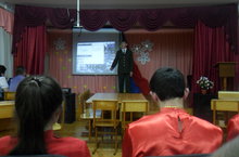 Учащиеся 8 класса (классный руководитель Медведева Н.Н.) в рамках военно-патриотического месячника показали литературно-музыкальную композицию «У войны не женское лицо». Девочки показали трудную работу фронтовых медсестер, рассказали о женщинах, ушедших на фронт из нашей местности. Мальчики инсценировали бой и привал, спели песню под гитару.