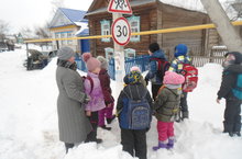 Дети вспомнили ранее изученные знаки, познакомились с обозначением пешеходных переходов и рассмотрели дорожные знаки, встречающиеся на пути в школу.