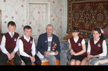 Стареют ветераны войны, слабеют их силы, уходит здоровье. Не могут уже как раньше прийти в школу, на митинг к памятнику павшим, возложить цветы. Поэтому ученики поздравляют ветеранов на дому. К сожалению, в нашем поселении осталось только три ветерана.