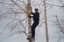 Члены кружка «Друзья природы» развесили скворечники на территории села.