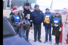 Члены кружка «Юные друзья ГАИ» совместно с сотрудниками ОГИБДД провели Акцию «Поздравь водителя», которые поздравили водителей, пешеходов с Новым годом и вручали памятки. 28.12.2012