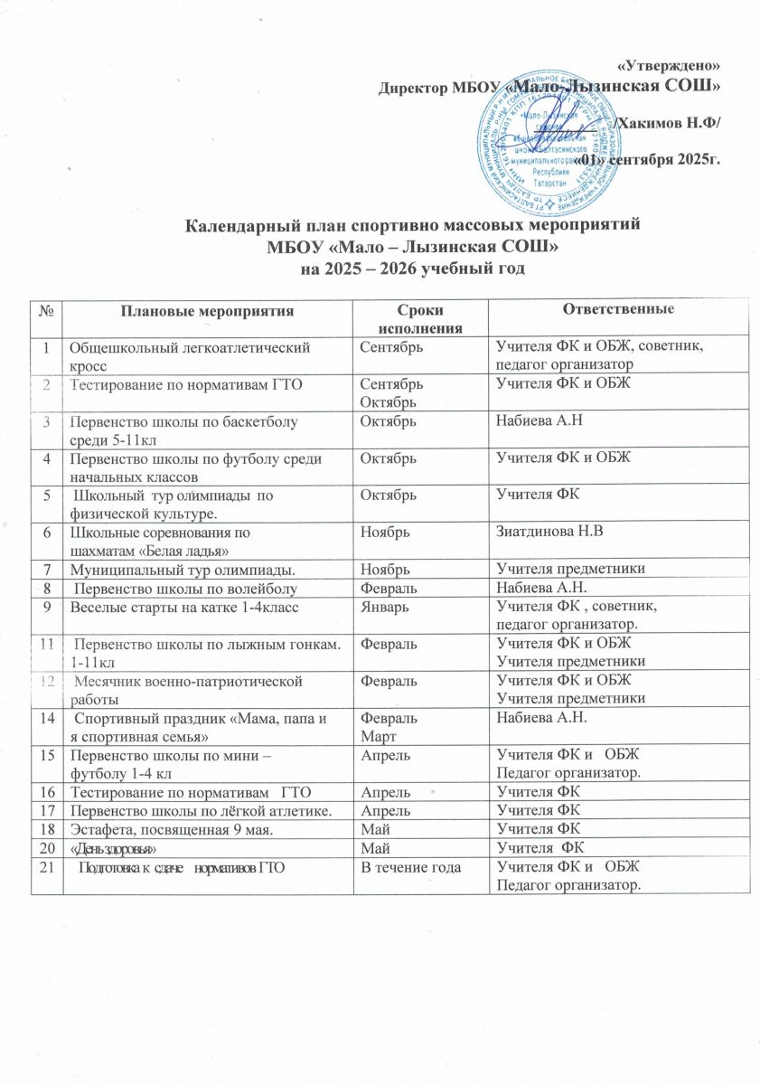 Календарный план спортивно массовых мероприятий
