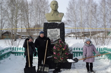 V сыйныф укучылары һәйкәл янын даими тәртипләп тора.