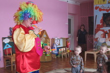 Көлке көнендә безгә клоун килде. Ул үзе белән бик күп уен кораллары алып килде. Балалар клоун белән бергә уен коралларында уйнадылар, көн күңелле үтте.