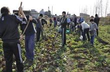 Мәктәп бакчасында көзге эш башланды. Дәресләрдән соң укучылар бик теләп кишер, чөгендер уңышы җыюда катнаштылар.