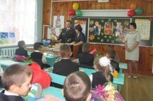 «Игътибар балалар» куркынычсызлык айлыгы кысаларында участок инспекторы Зарипов Р.Ф. 1нче сыйныф укучылары белән юл йөрү кагыйдәләре буенча әңгәмә уздырды. Укучыларга уткайтаргыч беләзекләр, календарь һәм китапчыклар бүләк итте.