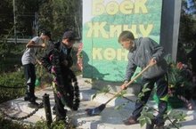 Бөек Җиңүнең 70 еллыгын каршылап мәктәбебездә стендлар ясау башланды. Сугышта һәлак булган авылдашларыбыз истәлегенә куелган һәйкәл янын һәрвакыт чистартып торабыз.