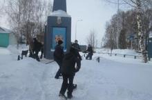 5 сыйныф укучылары Бөек Ватан сугышында ятып калган авылдашлар истәлегенә куелган һәйкәл тирәсен һәрвакыт карап, чистартып тора.