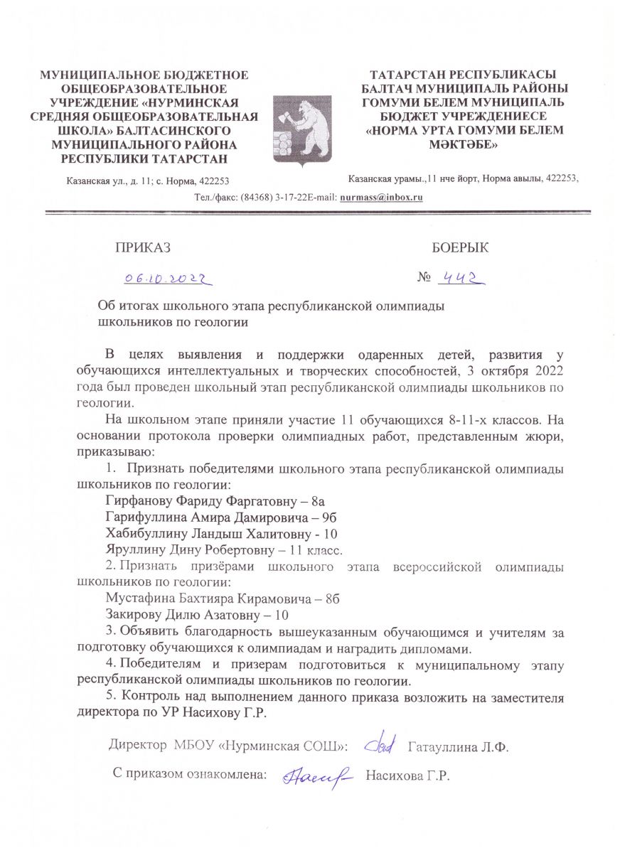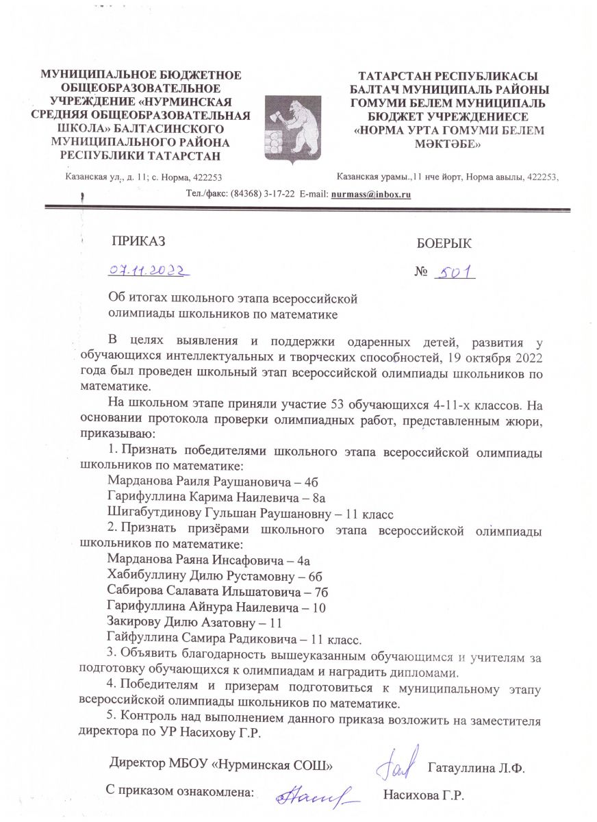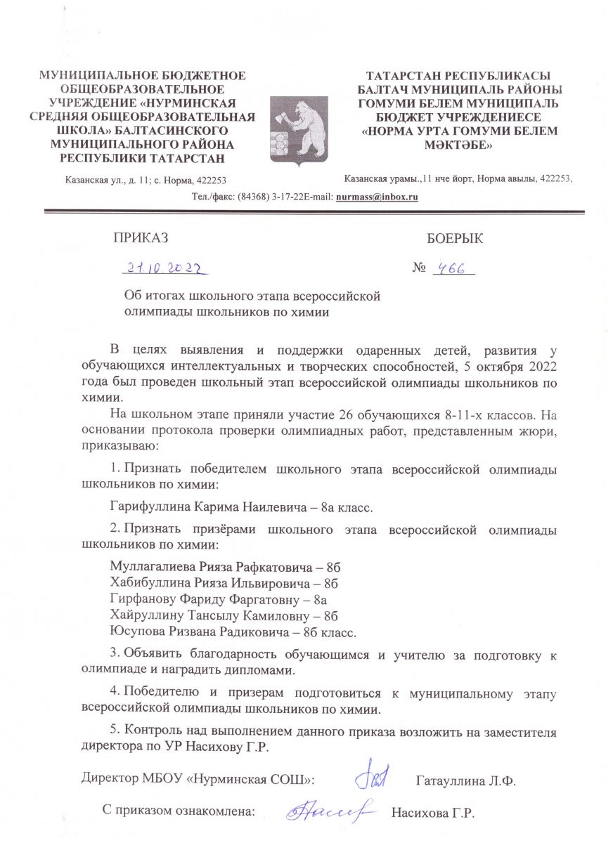 Приказы об итогах школьного этапа всероссийской олимпиады школьников: