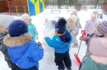 На прогулке дети средней группы решили слепить снеговика.