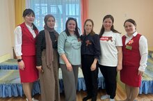 В честь 80-летия Великой Победы воспитатель компенсирующей группы Алия Рефатжановна и учитель логопед Ильсина Азатовна провели для родителей мастер-класс по изготовлению "Георгиевской ленты". -