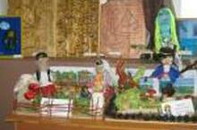 Иң элек чарага килгән балалар Г.Тукай иҗатына багышланган рәсемнәр, кулдан ясалган композицияләр күргәзмәсе белән таныштылар.
