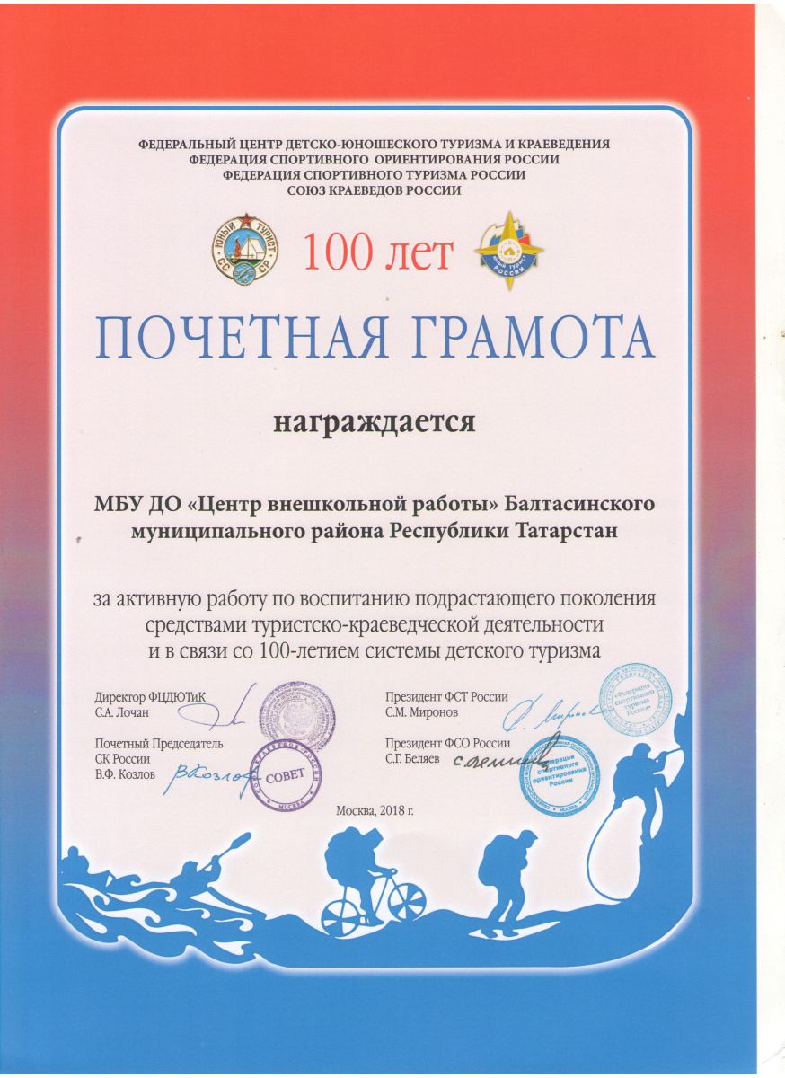 Почетная грамота УДО 100 летию детского туризма Всероссийский(1).jpeg