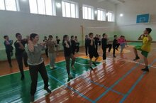 Активисты движения первых провели общую зарядку. После учащиеся сыграли в волейбол.