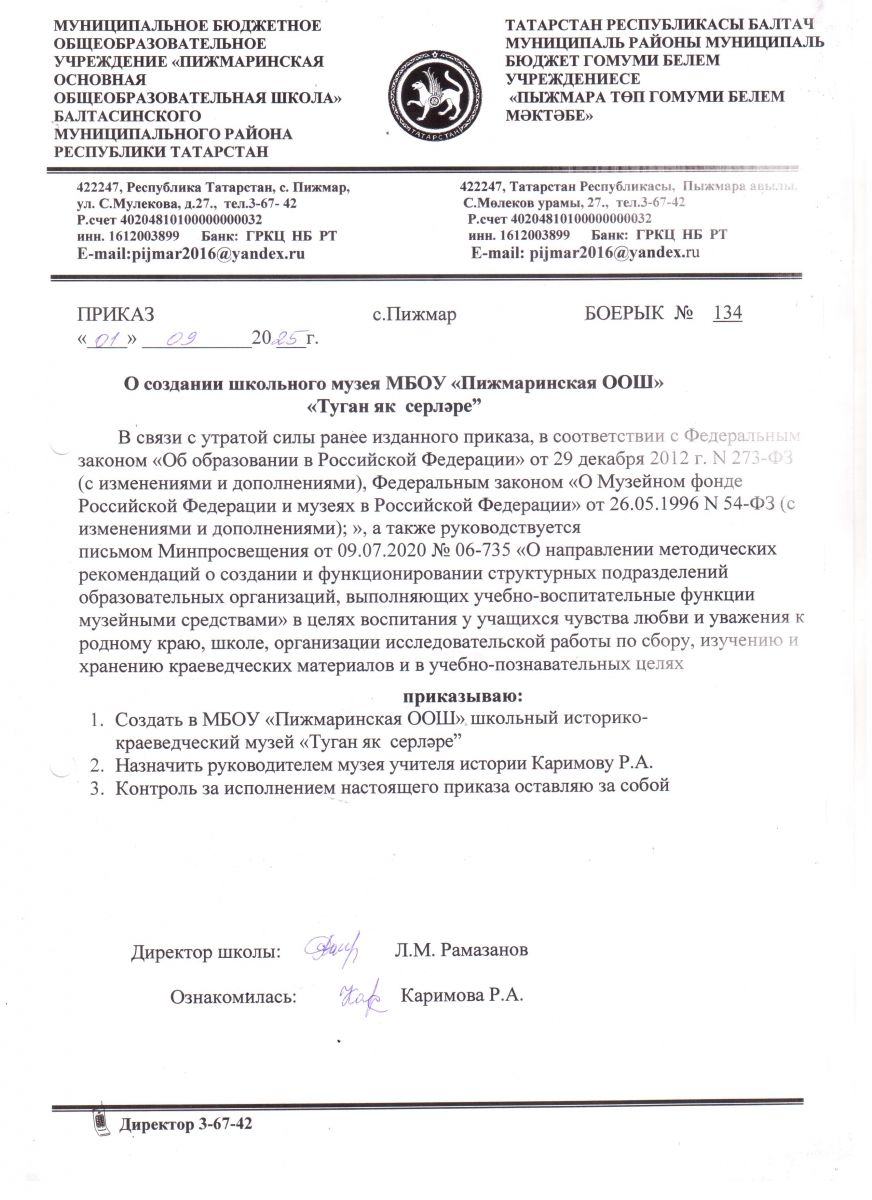 муниципальное бюджетное общеобразовательное учреждение «Пижмаринская основная общеобразовательная школа» Балтасинского муниципального района Республики Татарстан /Татарстан Республикасы Балтач муниципаль районы муниципаль бюджет гомуми белем учреждениесе « Пыжмара төп гомуми белем мәктәбе».