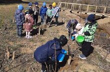 "В рамках недели "Подари Земле сад" в конкурсе #ЭКОВЕСНА, воспитанники средней группы посадили около родника 20 шт фруктовых деревьев.