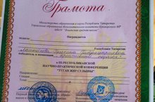 "Туган җир сулышы" исемендәге III республика күләмендәге фәнни-гамәли практик конференциясендә 4 нче сыйныф укучысы Хәбибуллина Илүзә уңышлы чыгыш ясап дипломга ия булды.