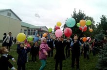 "Голубь мира" акциясе кысаларында лицей укучылары бердәм рәвештә Бөек Ватан сугышында һәлак булганнарның исемнәре язылган шарлар очырдылар.