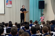 Инструктажи безопасности на осенние каникулы провели сотрудники муниципальной служащий полиции и ГИБДД/ГИБДД һәм муниципаль полиция вәкилләре көзге каникулларга куркынычсызлык буенча инструктажлар уздырды.