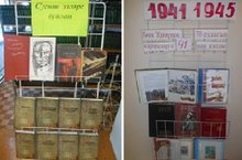 Бөек җиңүнең 70 еллыгын каршылаган көннәрдә китапханә сугыш чорына багышланган китаплар күргәзмәсе һәм уку өчен кызыклы әсәрләр тәкъдим итте.