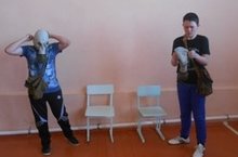 Сыйныфлар арасында противогаз киеп йөгерү ярышы үткәрелде.