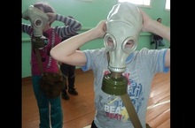 Бүген мәктәптә егетләр һәм кызлар арасында противогаз киеп йөгерү ярышы уздырылды.