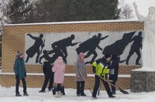 Обучающиеся очистили территорию памятника от снега./Шефство над памятниками/Һәйкәлләргә шефлык итү