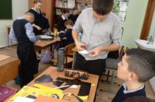 В преддверии Дня отца учащиеся начальных классов вместе с волонтёрами изготавливали открытки.