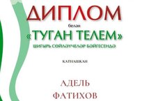 Фатихов Әдел "Туган телем" шигырь сөйләү бәйгесендә диплом белән бүләкләнде. 18.03.2022