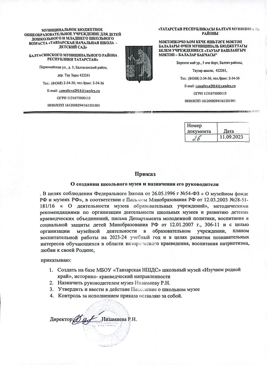 Муниципальное бюджетное образовательное учреждение для детей дошкольного и младшего школьного возраста «Тавзарская начальная школа-детский сад» Балтасинского муниципального района РТ/Татарстан Республикасы Балтач муниципаль районы мәктәпкәчә һәм кече яшьтәге мәктәп балалары өчен муниципаль бюджеттагы гомуми белем учреждениесе "Таузар башлангыч мәктәп - балалар бакчасы