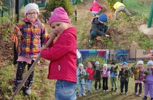 Дети подготовительной группы дружно убрали урожай овощей.