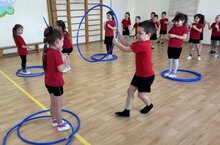 С детьми старшей и подготовительной группы Алина Георгиевна провела забавные игры на свежем воздухе. Где дети проявили свою активность, ловкость в метании в цель и сплочённость команд.