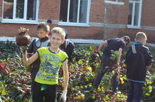 Учащиеся 5-6 классов приняли активное участие в сборе столовой свеклы на пришкольном участке.