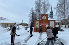 Под руководством Шарафиевой Г. М. ученики 8 класса навели порядок на территории памятника воинам, погибшим в годы Великой Отечественной войны. Они быстро очистили прилегающую территорию от снега.