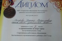 Мәктәбебез укытучылары спартакиада да актив катнаштылар. Петрова Гөлназ Нурулла кызын шорт-трек ярышында 3 урын алуы белән чын күңелдән котлыйбыз!