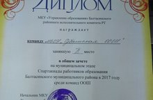 “Саулык – иң зур байлык”, - ди халык. Чыннан да, сәламәтлек – кеше бәхетенең нигезе, исәнлек булганда гына кеше үзенең теләк- омтылышларына ирешә, тирә-якны танып–белә, хезмәттән, уеннан, физик күнегүләрдән ямь таба.Укытучылар спартакиадасында безнең мөгаллимнәребез дә 2 урынны яулап кайттылар!Аларга чыннан да бәхет - шатлык телибез, алдагы эшләрендә бары тик уңышлар гына юлдаш булсын иде дигән теләктә калабыз!Афәрин!