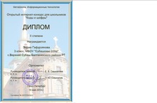 “Коды и шифры” конкурсында 3нче сыйныф укучысы Гафурҗанова Энҗе 2нче дәрәҗә дипломга ия булды.