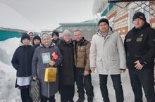 Матерей и жен участников СВО активисты школьного самоуправления вместе с советником директора по воспитанию Фаязовой И.И. совместно с главой сельского поселения и руководителем ООО им.Тукая поздравили с наступающим праздником 8 марта