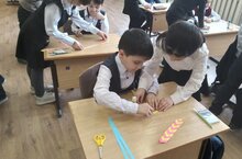 Второклассники с большим удовольствием учат наших первошей тому, что умеют делать сами, например, закладки./Икенче сыйныф укучылары беренче сыйныф укучыларыбызга үзләре эшли алганны, мәсәлән, кыстыргычларны, бик теләп өйрәтәләр. 16.03.2023