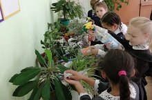 "Учимся ухаживать за комнатными растениями". Практический классный час прошёл в 1классе в рамках Осенней недели добра.