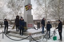 Учащиеся 10 класса очистили от снега территорию обелиска. Когда было предложено поучаствовать в акции, ребята с радостью откликнулись принять участие в очистке территории обелиска от снега.
