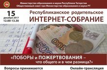 15 декабря в 12 часов состоится Республиканское родительское интернет-собрание "Поборы и пожертвования - что общего и в чем разница?". Вопросы принимаются по адресу: roditelirt@mail.ru. Онлайн-трансляция на сайте киу.рф.