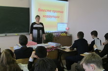 Сегодня в рамках антикоррупционной декады учитель истории и обществознания Ахмадиева Ю.О. провела общешкольное мероприятие "Международный день борьбы с коррупцией" среди 9-11 классов с приглашением правоохранительных органов участкового инспектора уполномоченного полиции Валеева А.В. С учащимися была проведена беседа о проблемах противодействия коррупции и методов ее предупреждения, с целью воспитания правогого сознания и повышения правовой культуры учащихся для выбора активной гражданской позиции.