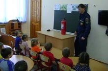 В рамках плана работы по профилактике пожарной безопасности наш детский сад посетили работники службы МЧС. Шарапов А.С. рассказал детям, что нельзя играть со спичками, пользоваться электроприборами без присмотра взрослых. А также показал и рассказал об огнетушители.