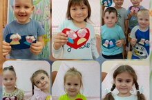 Дети старшей группы "Смородинка" сделали подарок, для своих дедушек и бабушек, в виде портретов, открыток.