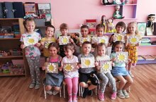 С Днём Семьи поздравляют малыши 1 младшей группы "Вишенка" и дарят ромашки сделанные своими руками.