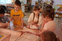 Ребята умеют договариваться друг с другом в подгруппах, выражают свое мнение. У них развивается творческое воображение."Бар халыклар әкиятләре" проекты кысаларында мәктәпкә әзерлек төркемендә "Казлар -Аккошлар" әкиятен сәхнәләштереү буенча әзерлек эшләре бара. Балалар үз куллары белән әкият өчен барлык кирәкле атрибутларны әзерлиләр.