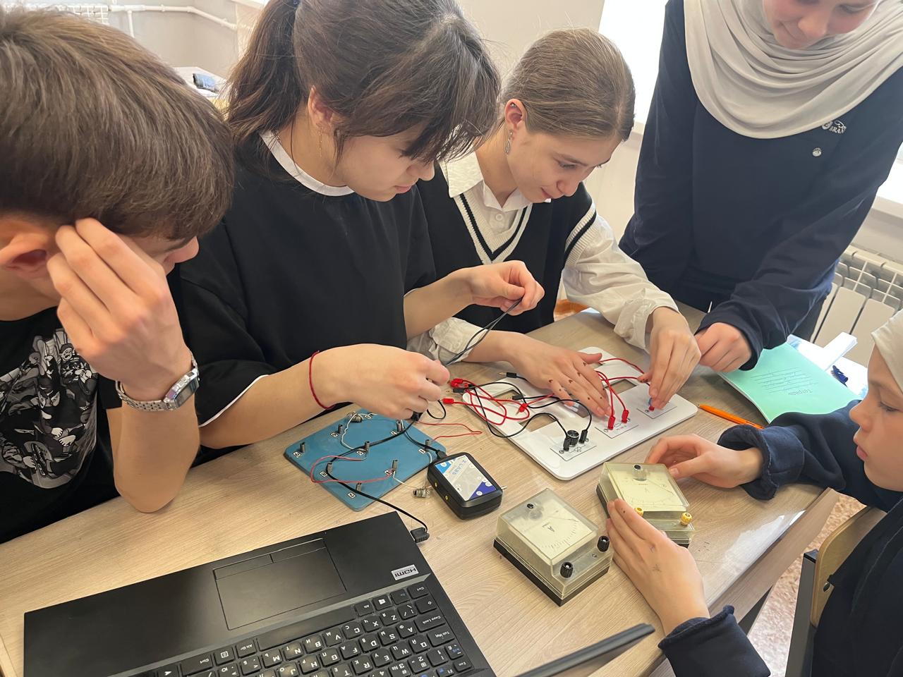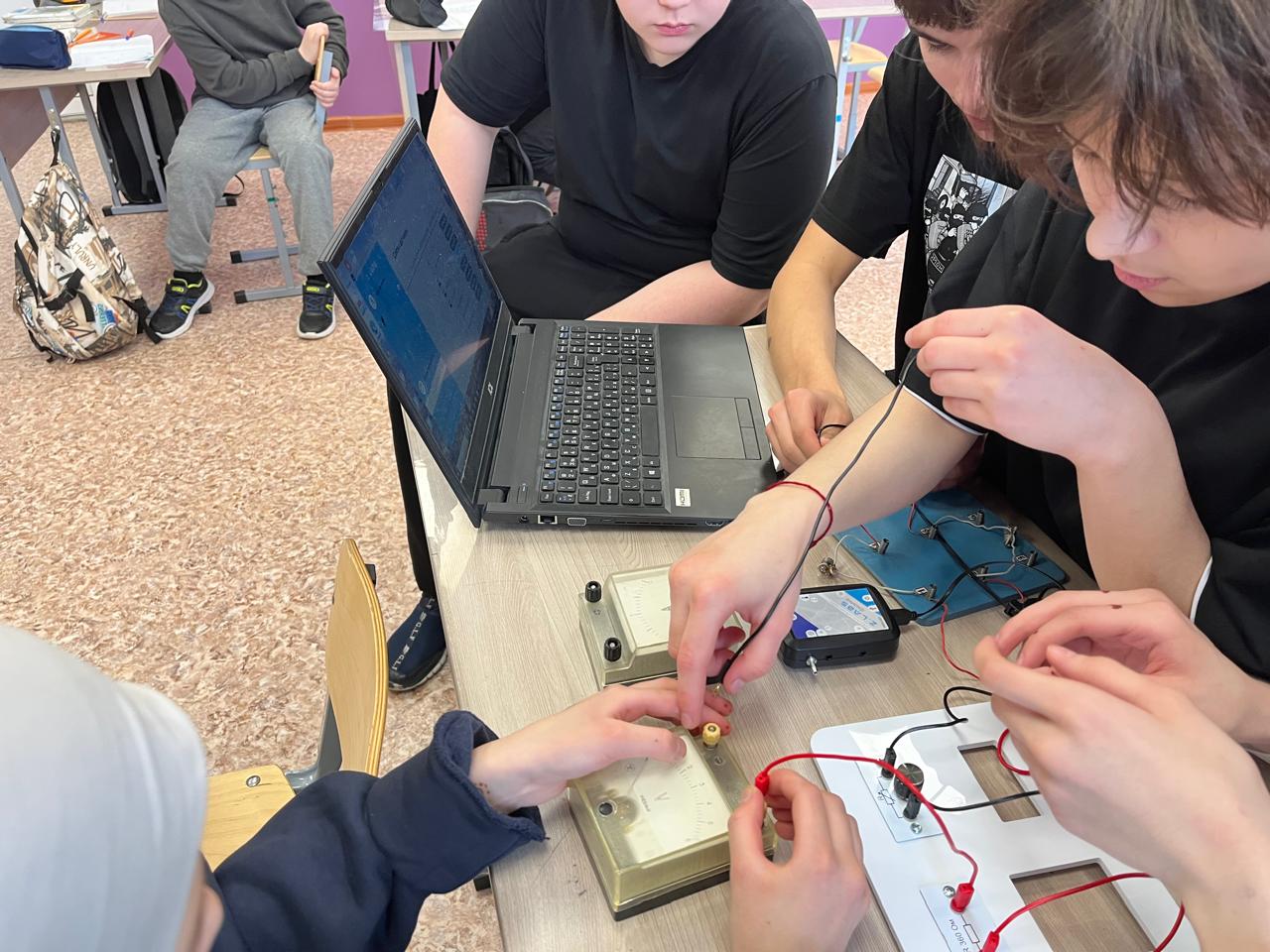Учащиеся 7б класса на уроке физики провели лабораторную работу по теме "Параллельное и последовательное соединение проводников"с применением Лаборатории Точка роста.В ходе лабораторной работы ребята экспериментально проверили законы параллельного и последовательного соединения проводников. Выяснили недостатки и достоинства соединений проводников.